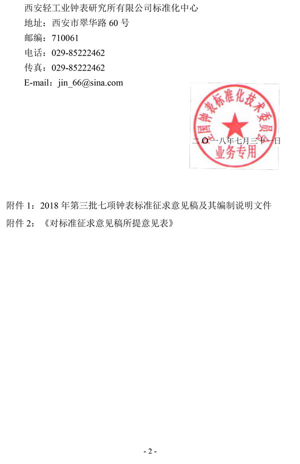 关于征求2018 年第三批七项钟表标准征求意见稿意见的通知