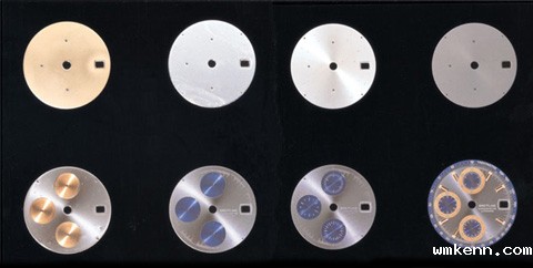 面盘制作工序:由于功能复杂,每一片计时面盘都必须经过多重加工过程。