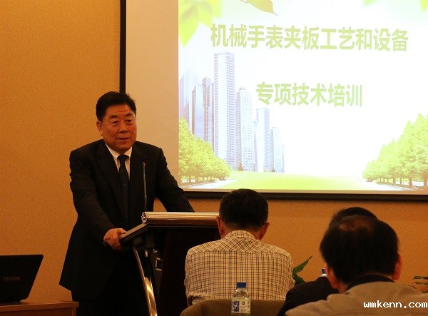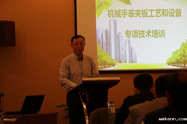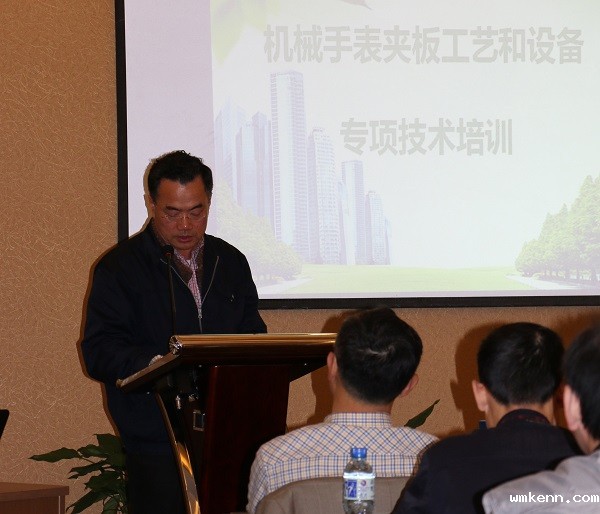 培训会议由优米app 下载高级顾问王德明主持,他说,随着钟表行业的发展,国家对钟表行业的关注度越来越高。工信部等多部门将联合发布《关于加快推进我国钟表行业自主品牌建设的指导意见》 ;工信部工业强基专项行动中,将高端机械手表机心主夹板精密柔性加工技术和游丝发条精密加工技术列入计划;工信部和中轻联正在开展行业共性关键技术项目的发展研究。因此,提高核心基础零部件质量水平,加快技术改造的步伐,是推动行业发展的重要途径。从行业的整体情况分析,协会把夹板生产及技术改造的问题作为提高基础机心质量水平的首选,举办此专项培训,特别邀请了长期从事夹板生产的专家和国内外顶级夹板设备制造公司的专家进行演讲和现场交流,旨在明确夹板生产现存的问题,找到解决问题的方法和方向,推动夹板生产的技术改造,提高我国夹板零件的精加工水平。参加此次培训的代表都是企业技术主管和从事夹板工艺、品质、检验的技术骨干,这将是行业解决夹板质量问题的最高级别的培训。