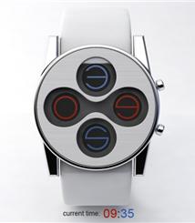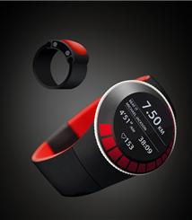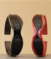 初看这个产品以为是个设计漂亮的手镯,有着漂亮的色彩,别致的造型。但这确实只是它的掩饰,其他是一款手表,它没有显示时间的屏幕,而是以激光投影的方式将时间投射到手腕上。不过不知道这光是激光还是一般的投影光